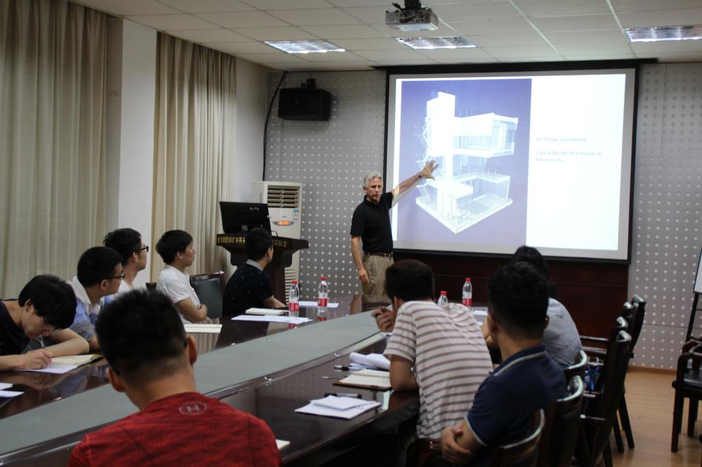 6月12日上午美国北亚利桑那大学工程学院,土木工程、建设管理、环境工程系副主任斯蒂芬·米德教授应邀来我校作了题为“未来住房建筑的设计和构建”的学术报告。斯蒂芬·米德教授引用了大量的工程实例,深入浅出的讲述了未来建筑向着绿色环保,智能化发展。报告介绍了新型生物材料在建筑行业的应用,建造可持续发展的社区,公园化集约化的居住场所,创新交通解决方式等。为师生带来了一场别具一格的学术报告。报告结束后,斯蒂芬·米德教授与师生进行交流互动。本报告由能源学院、学科办、柴敬教授光纤光栅传感监测创新团队联合举办。理学院刘金瑄教授主持了报告会,能源学院、建工学院、理学院多名师生聆听了报告会。